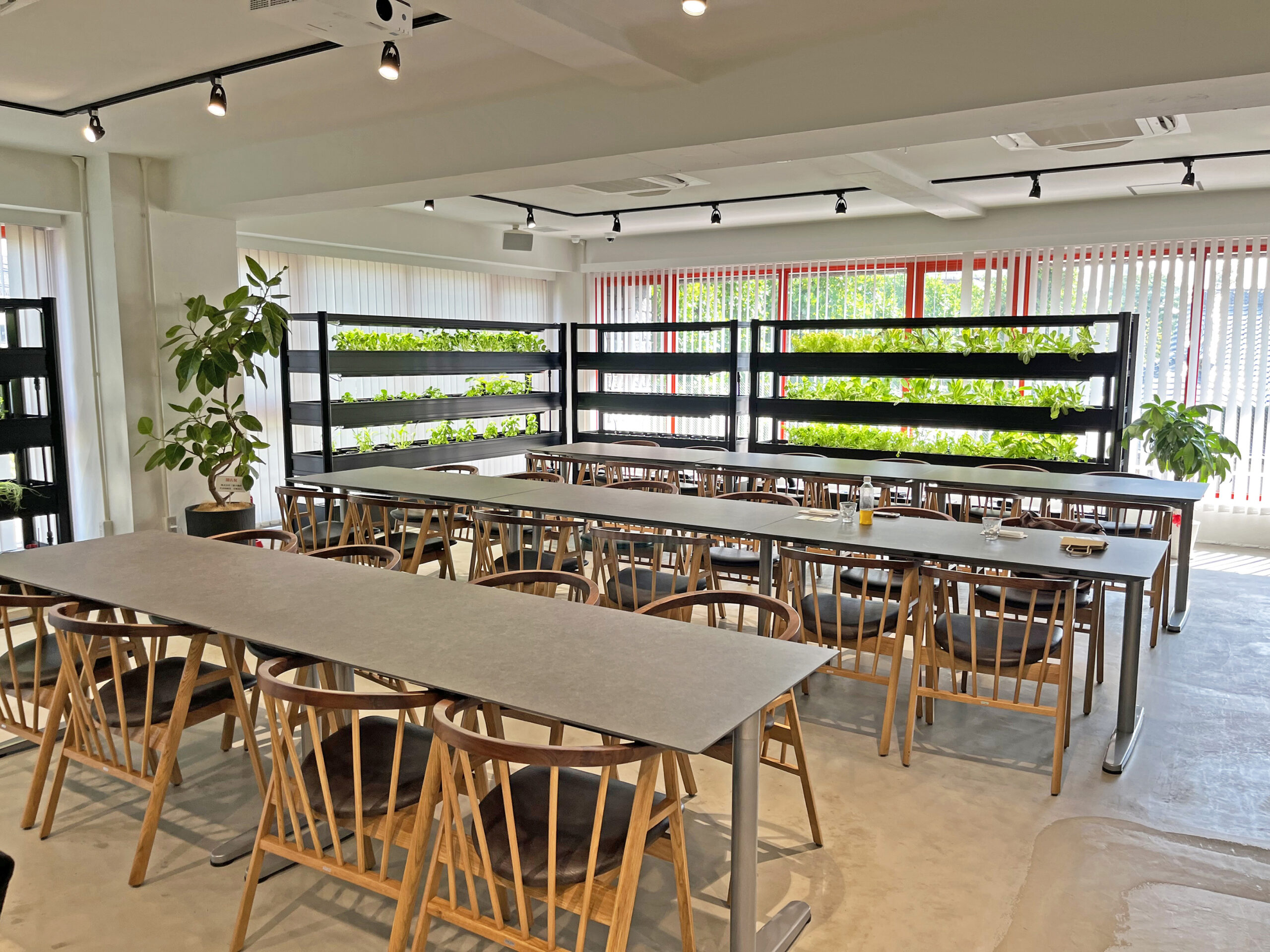 植物の育苗に必要な照明や湿度を保ち、生産に必要な設備や業務をワークプレイス内で実現し、地産地消の取組を後押しします。