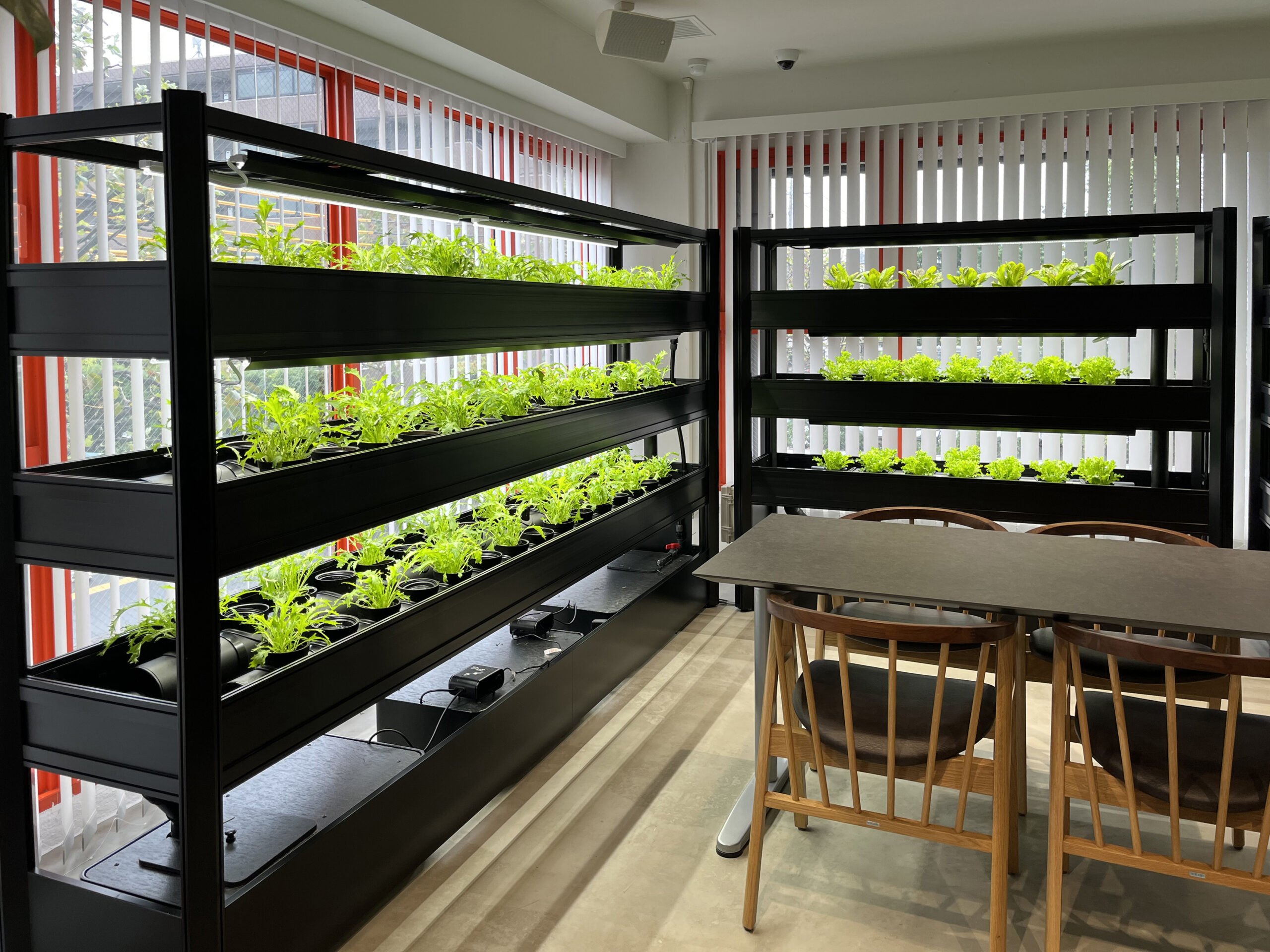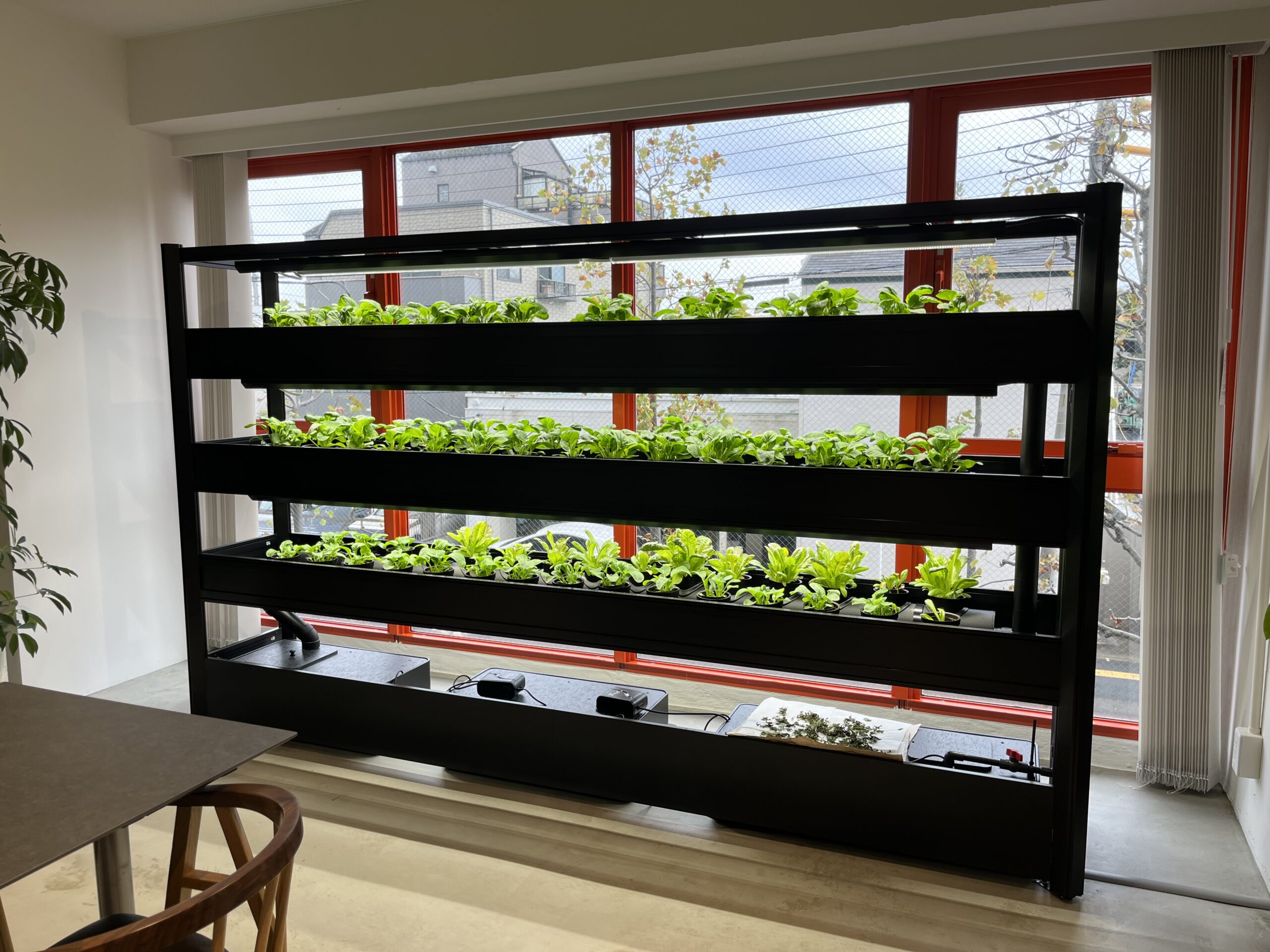今回、建物内のリニューアルにあたり、当社農場をご覧いただいた際に、創業で関りのあった野菜とのゆかりを感じられる室内で野菜栽培をしたいとのリクエストを頂きました。