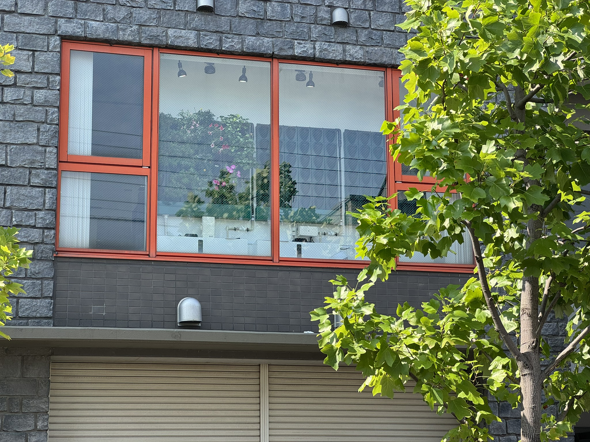 設置個所の壁は全て窓ガラスとなっているため、全面を覆わず、外の眺望も見える緑化となっています。