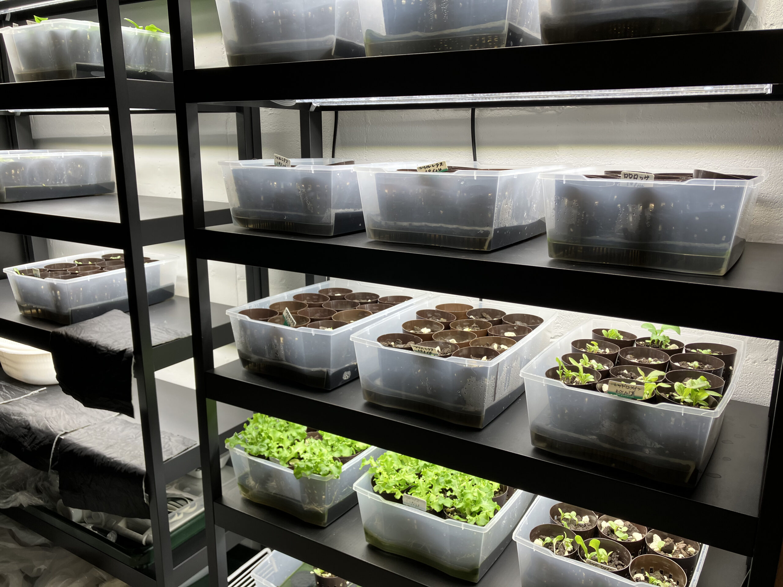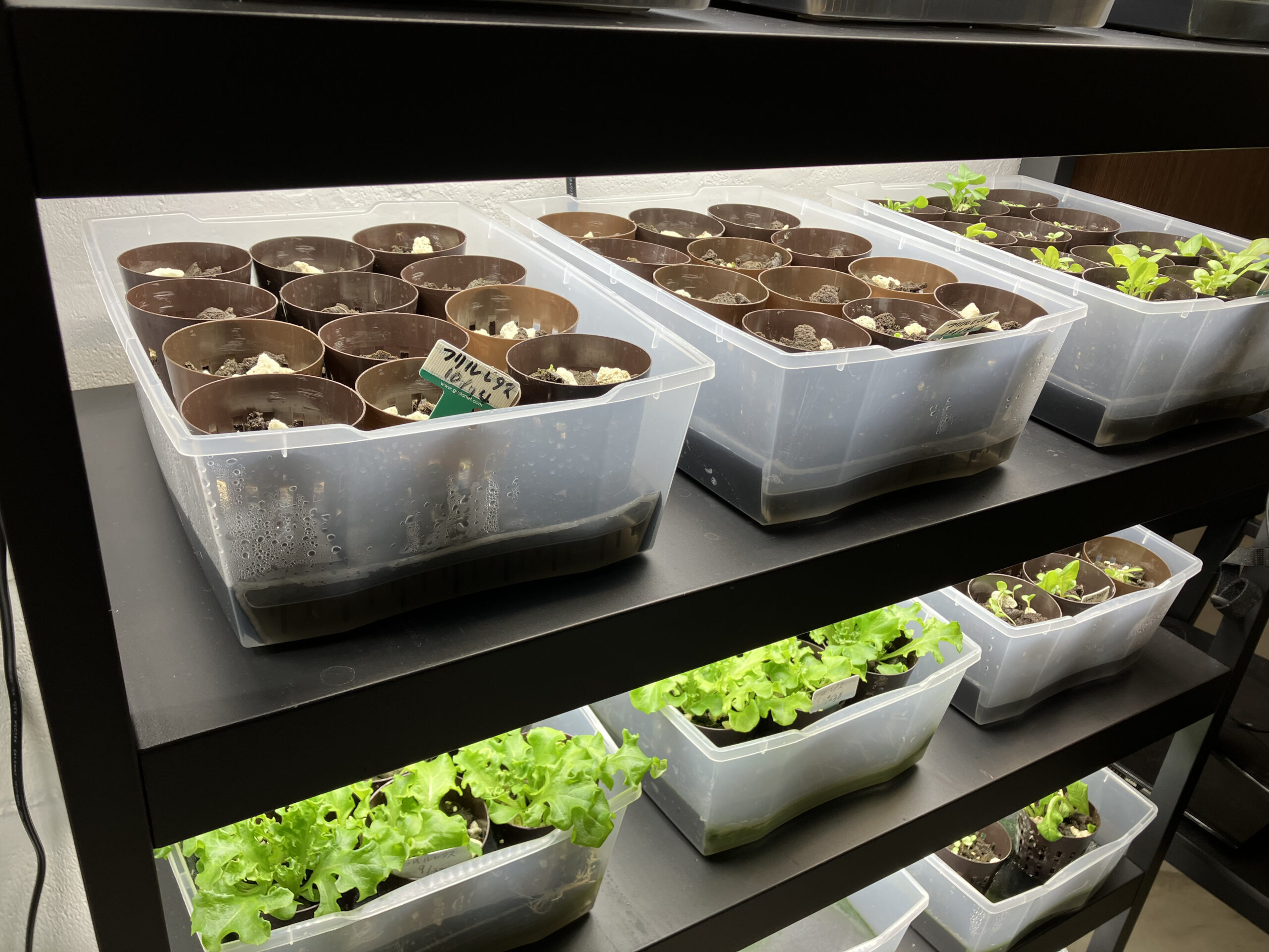 みどりスタックの壁面の裏側のスペースに、育苗端を設置しています。