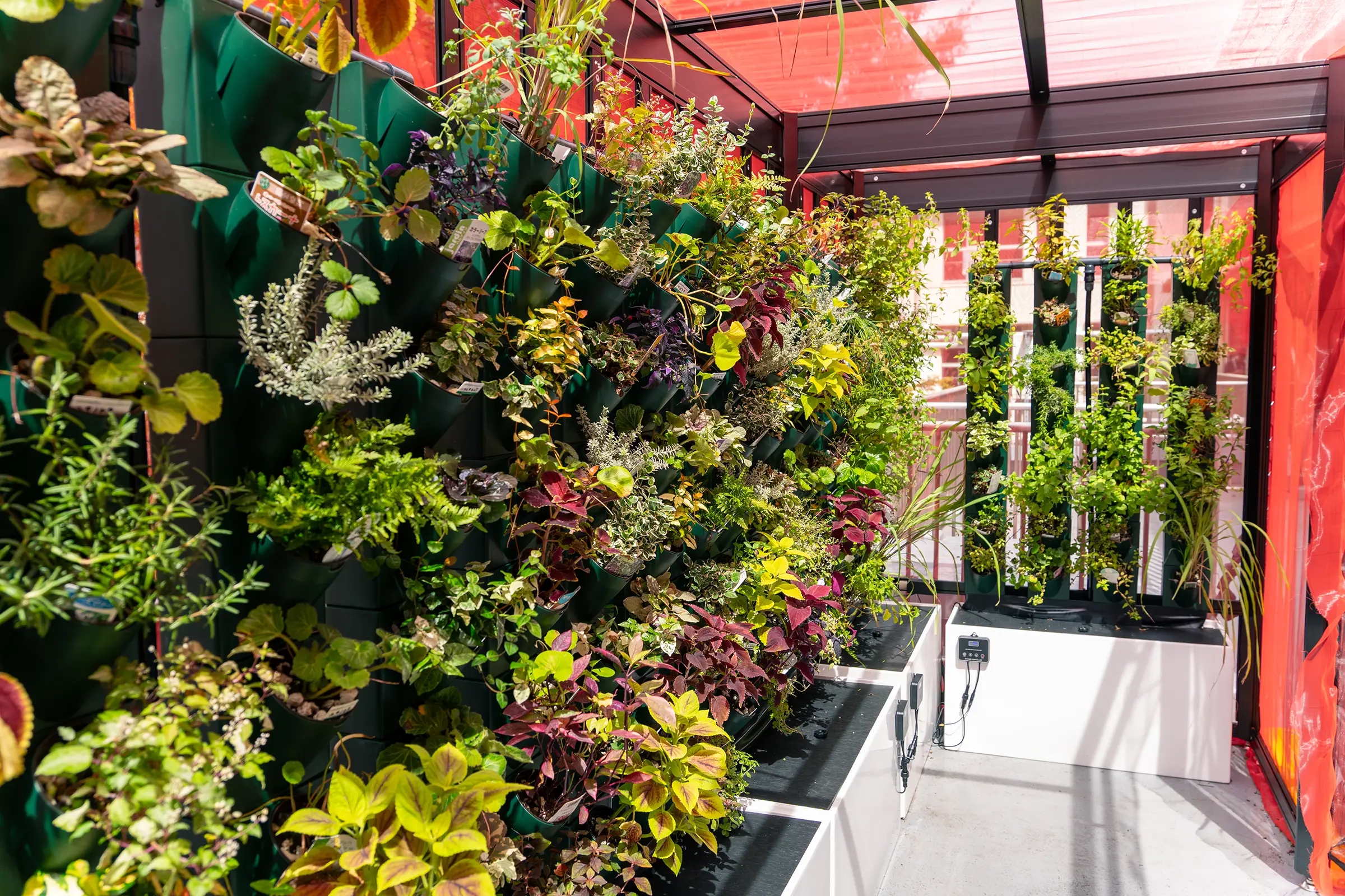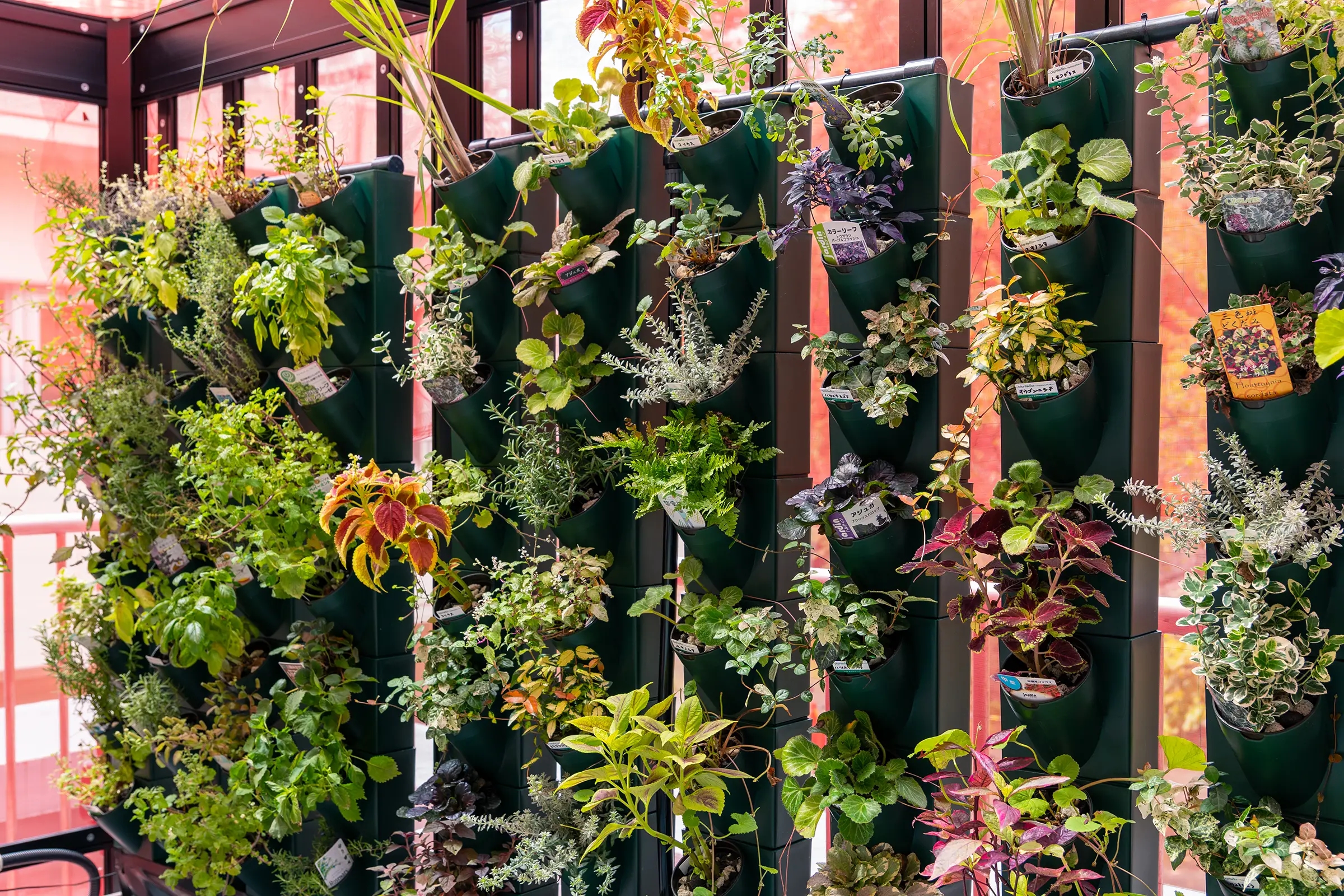 垂直水耕栽培施設を使用した花野菜ハーブの栽培