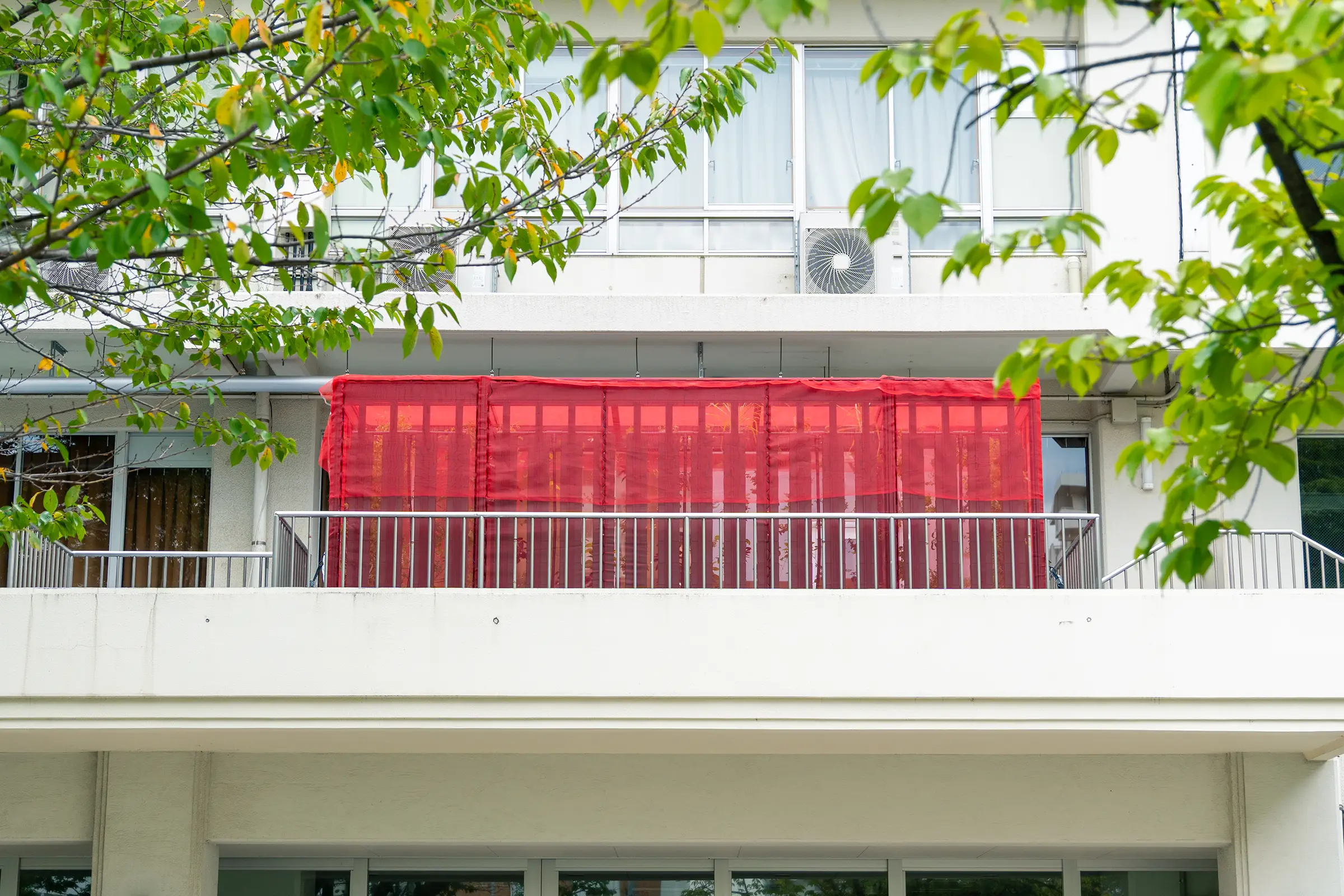 パーゴラには防虫効果のある、赤色のネットが付けられえています。