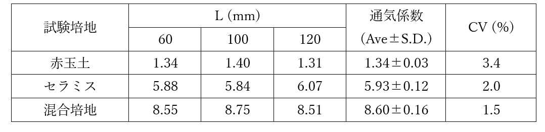 表1 各種培地の通気係数(扈ほか,2024)